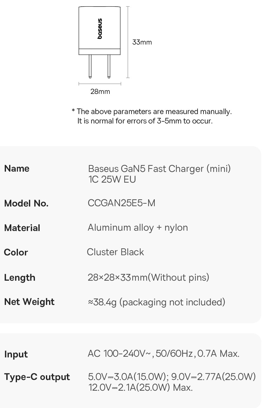 Baseus Charger GaN5 25W mini For Samsung S24 S23 S21 S20 Google Pixel Iphone 15 Series -P1011090B113-00