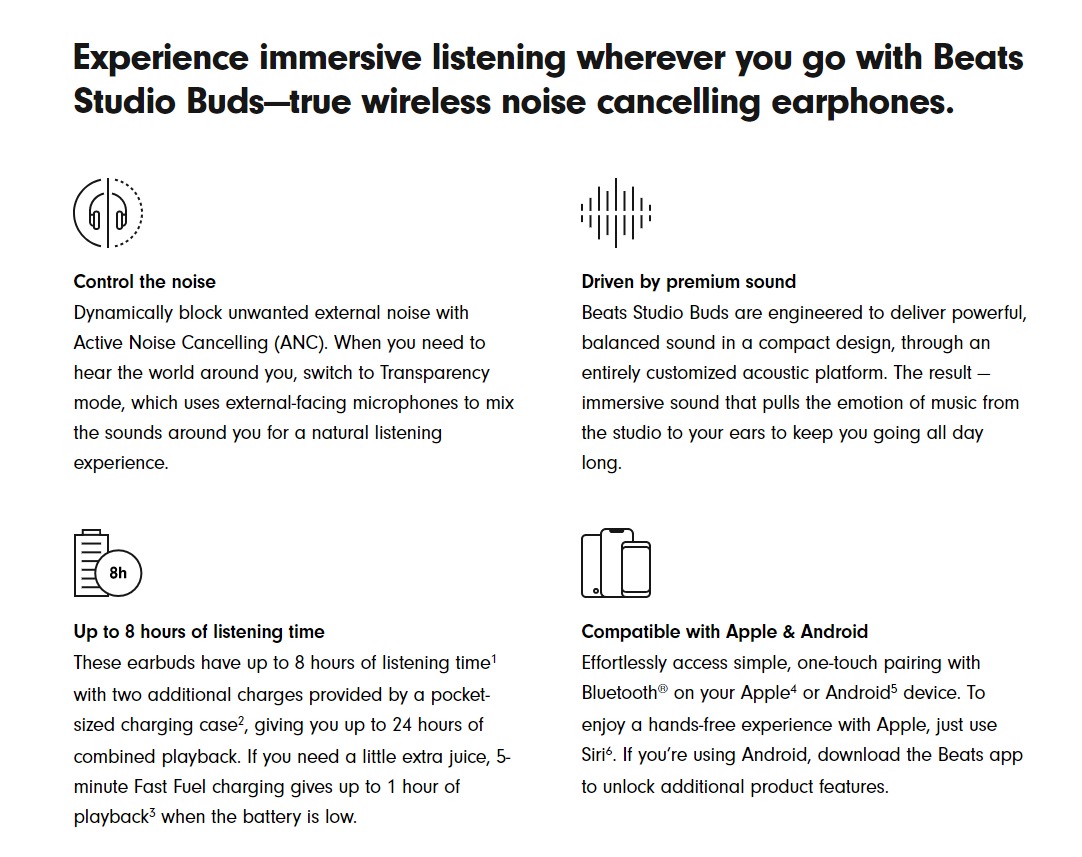 Immerse yourself in your audio and be heard clearly with the Beats Studio Buds Noise-Canceling True Wireless In-Ear Headphones. Active noise cancellation technology is utilized to filter out distracting ambient noise, leaving you alone with your favorite songs, podcasts, and audiobooks. It’s ideal for workers in a busy office, when traveling on flights, or whenever you need some peace and quiet.