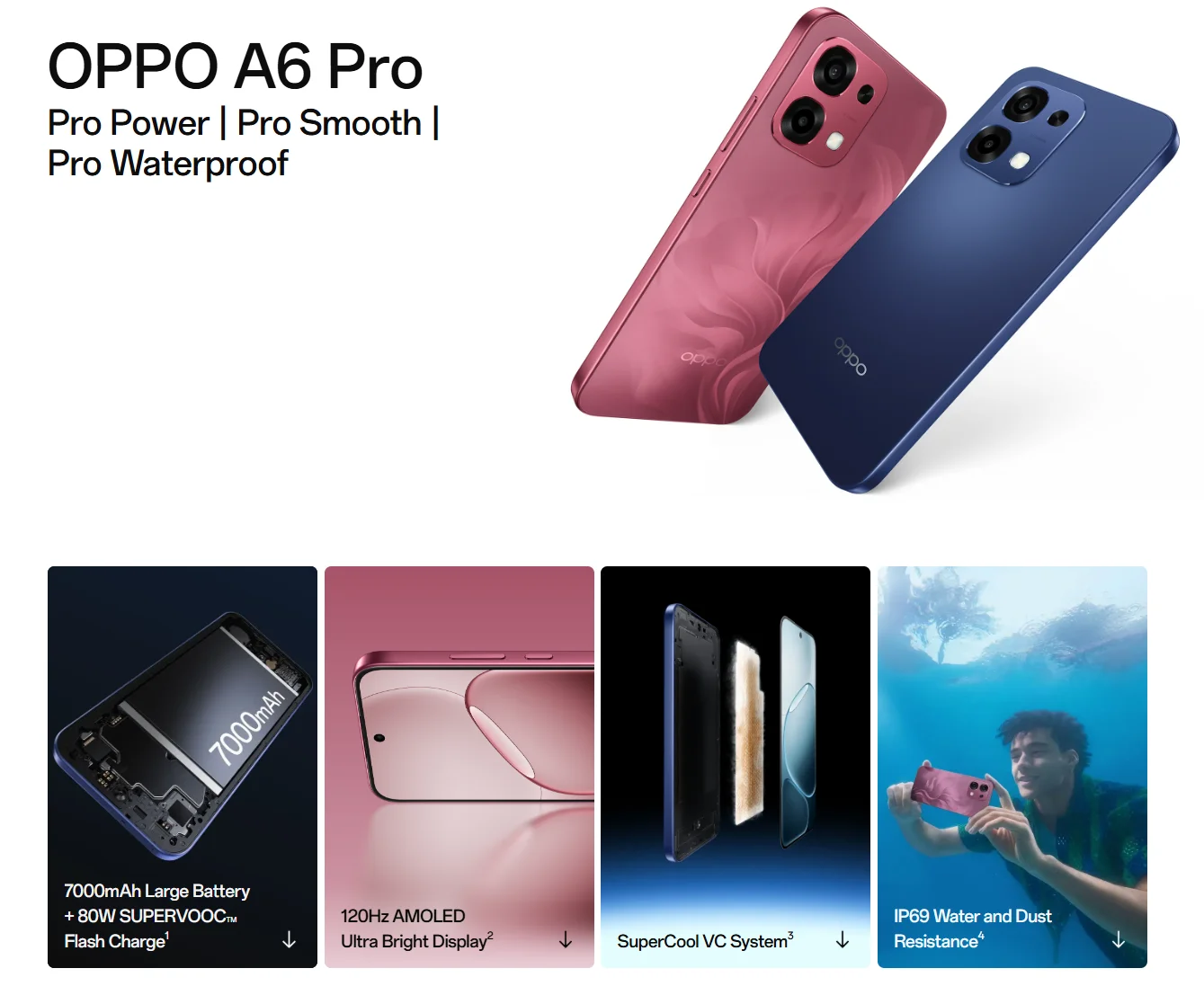 In summary, the Oppo A6 Pro stands out as a feature-packed smartphone with an elegant design, high refresh rate AMOLED display, 5G performance, and a long-lasting battery. It’s ideal for users who value durability, speed, and display quality in one premium device. Whether for gaming, photography, or productivity, the Oppo A6 Pro delivers an all-around superior experience that easily competes with higher-end smartphones.